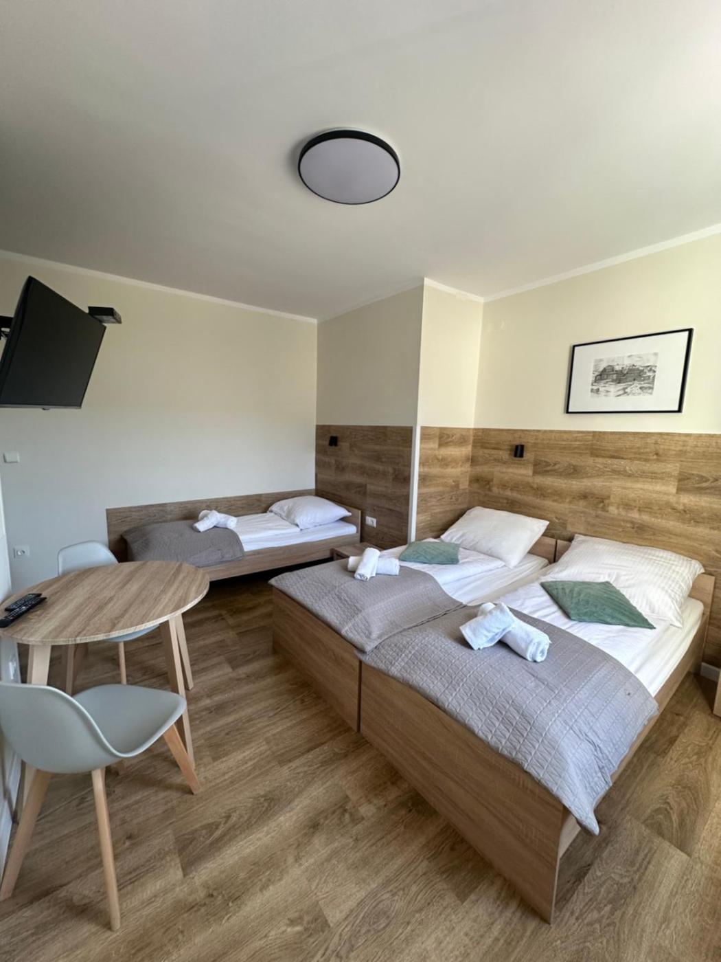 Pokój rodzinny typu Standard. The family room offers a wardrobe, heating, as well as a private bathroom featuring a shower and a hairdryer. The unit offers 4 beds. Rodzinny - 5 osobowy. Powierzchnia pokoju ok.: 40 mkw. ;