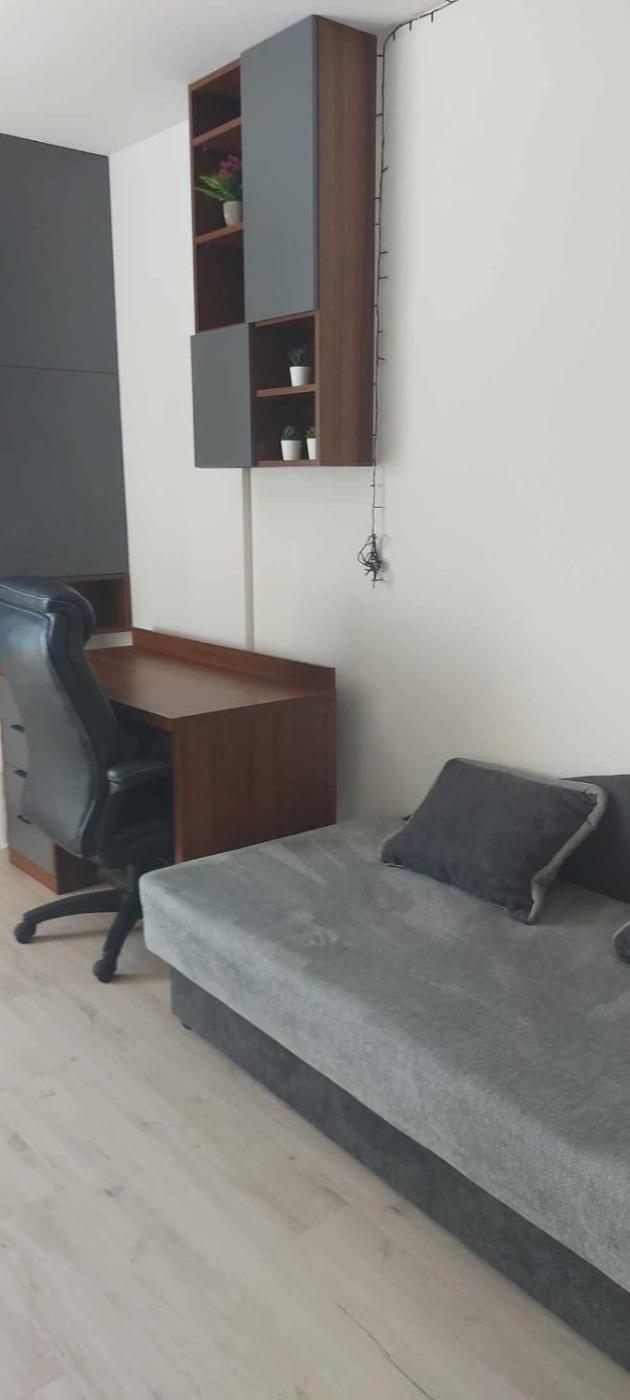 W apartamencie zapewniono sypialnię (1), aneks kuchenny z lodówką oraz zmywarką, a także łazienkę (1) z prysznicem.